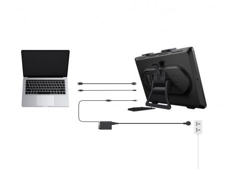 Artist Pro 24 (2-го поколения) оснащен встроенной подставкой ACS02 с регулировкой угла от 16° до 72°, которая позволяет выбрать удобное для творчества положение дисплея. Благодаря креплению VESA 100х100 мм дисплей устанавливается на подставку, гибко регулируя угол наклона для оптимизации пространства рабочего стола.