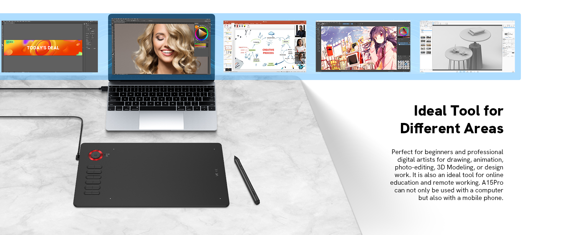 Идеальный инструмент для различных областей : идеально подходит как начинающим, так и профессиональным цифровым художникам для рисования, анимации, редактирования фотографий, 3D-моделирования и дизайна. Он также идеально подходит для онлайн-обучения и удалённой работы. Его можно использовать не только на компьютере, но и на телефоне Android.
